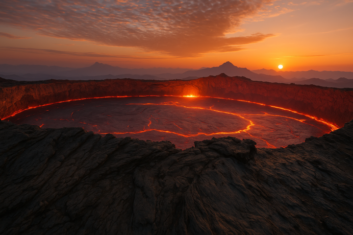 活跃火山口熔岩湖 - 东非裂谷地质活动的直观体现