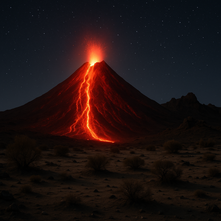 夜晚火山喷发景象 - 地下岩浆活动展现大陆分裂的内在动力