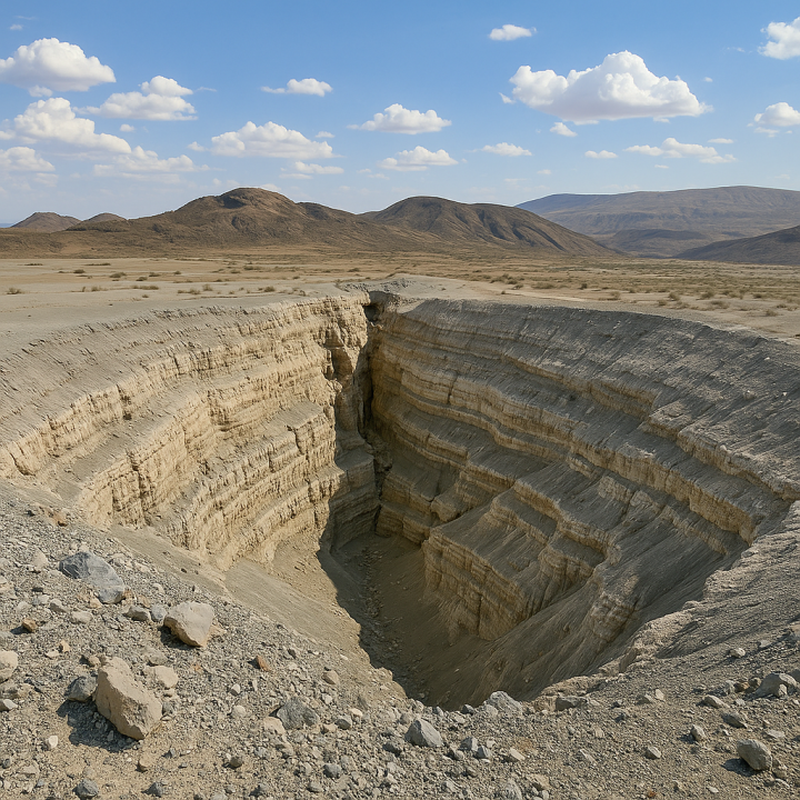 地质断层形成的巨型坑洞 - 地壳结构暴露的自然剖面